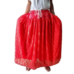 Saia de Renda Vermelha com Forro em Cetim com 3 metros de roda Umbanda, Candomblé e Quimbanda